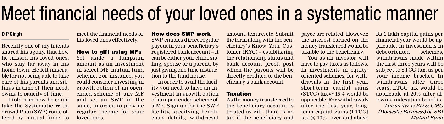 An individual can also invest in a debt of a hybrid mutual funds based on one’s risk appetite. Then for regular income, set up an SWP or systematic withdrawal plan which pays out a specific sum at regular intervals to the investor. If you have risk appetite and ample liquidity, you can also invest a portion in equity funds which will help beat inflation in the long run. Post retirement period need not be a short period. You must prepare for what if you outlive your expected life expectancy.